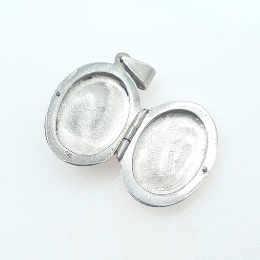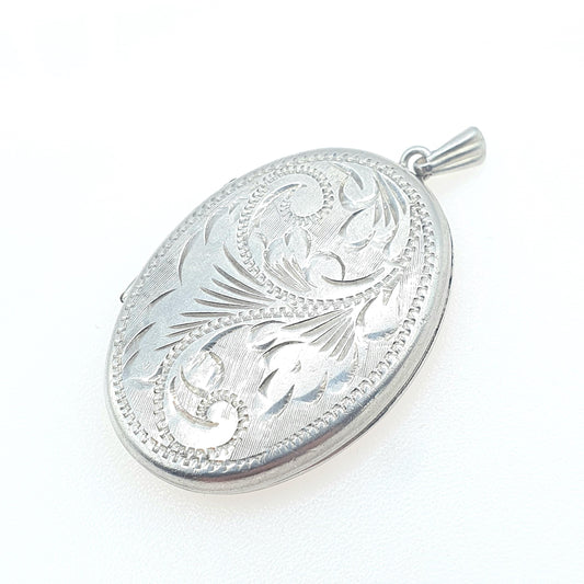 Vintage Sterling Silver Locket Oval Shape Engraved Front Large Necklace Pendant Jewelry Solid 925 Womens Photo Gift Jewellery