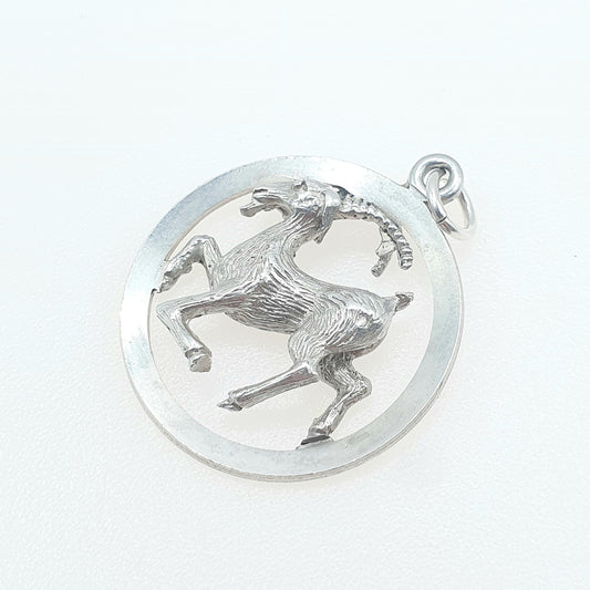 Vintage Sterling Silver Aries Ram Pendant Zodiac Astrology Horoscope Mens Womens Jewelry Jewellery Necklace Unisex