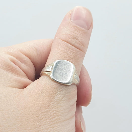 Old Vintage Sterling Silver Gold Vermeil Signet Ring Square Chunky 1930s Mens Womens Jewelry Jewellery