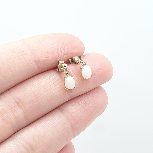 Vintage 9ct Gold Opal Earrings Stud and Drop Oval Cabochon Fire Gemstone Solid 9k 9kt Retro Womens Jewelry Jewellery
