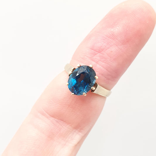 Vintage 9ct 9k Gold London Blue Topaz Ring Large Solitaire Solid 375 9kt Oval Cut Womens Jewelry Jewellery