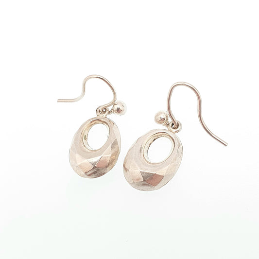 Antique Victorian Solid Silver Creole Hook Earrings Faceted Gypsy Etruscan Genuine 1800s Vintage Jewelry Jewellery