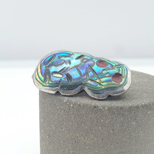 Antique Sterling Silver Tiki Brooch Abalone Shell New Zealand NZ Mother of Pearl Rainbow Iridescent Vintage Jewellery Jewelry