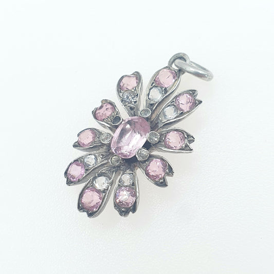 Antique Victorian Solid Silver Pink & White Paste Flower Pendant Handmade Art Nouveau Vintage Necklace Womens Jewelry Mens Jewellery