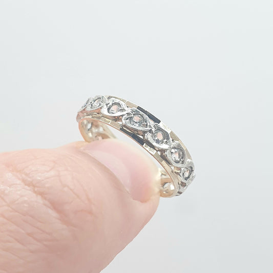 Antique 9ct 9k Gold Sterling Silver Eternity Ring Diamond White Spinel Band Art Deco Fine Estate Sparkly Full Womens Jewelry Jewellery