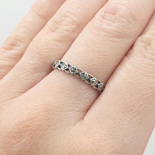 Antique Art Deco Solid Silver Marcasite Eternity Ring Tilted Square Band 1920s Womens Mens Vintage Jewelry Jewellery