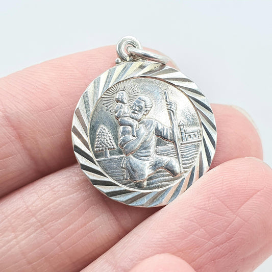 Vintage Sterling Silver St Christopher Pendant Concord Plane Ship Car Train Double Sided Womens Mens Jewellery
