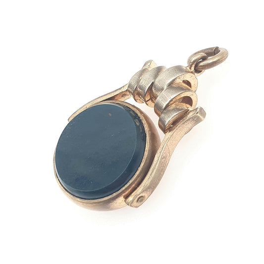 Antique Rolled Gold Bloodstone & Carnelian Spinner Fob Pendant Red Green Necklace Womens Jewellery Mens Jewelry Unisex