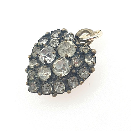 Antique Victorian Diamond Paste Puffer Heart Pendant Gold Tone Base Metal Necklace Sparkly Vintage Mens Womens Jewellery Jewelry