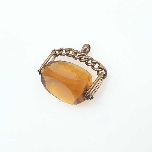 Antique Victorian Rose Rolled Gold Citrine Paste Spinner Fob Pendant Gold Filled Orange Glass 1800s Vintage Mens Womens Jewellery Jewelry