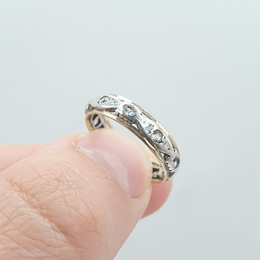 Antique Art Deco 9ct Gold & Solid Silver Eternity Ring White Spinel Womens Jewelry Jewellery UK K.5 US 5.5