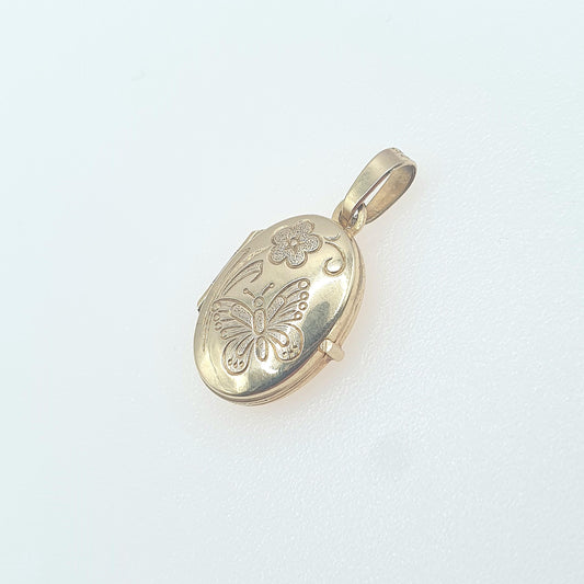 Vintage 9ct Gold Butterfly Locket All Solid 9k 9kt Insect Tiny Oval Necklace Photo Picture Pendant Retro Jewellery
