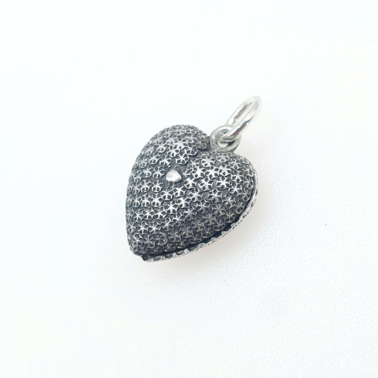 Antique Victorian Solid Silver Puffer Heart Charm Pendant Pastry Cutter Effect Charles Horner Style Womens Jewelry Vintage Jewellery
