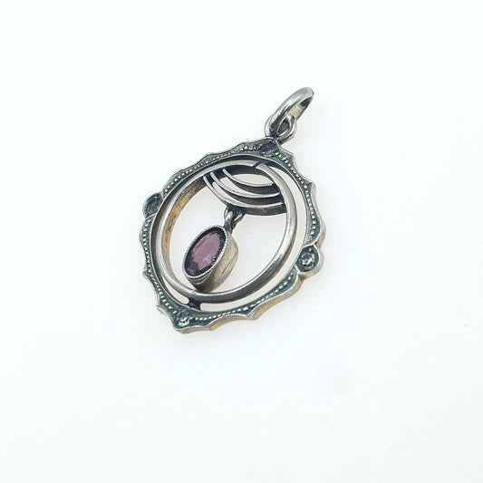 Antique Amethyst & Diamond Paste Edwardian Pendant Silver Tone Base Metal Openwork Pastes Vintage Womens Jewellery Jewelry