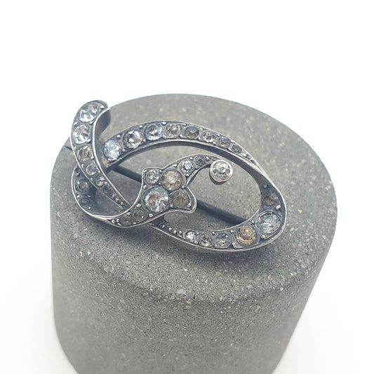 Antique Victorian Diamond Paste Solid Silver Brooch Spiral Swirl Old Cut Ornate Late 1800s Sparkly Foiled Glass Jewelry Jewellery