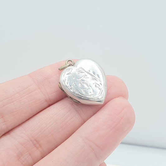 Antique Solid Silver Heart Locket Engraved Front Love Gift Back and Front Necklace Pendant Womens Jewelry Jewellery