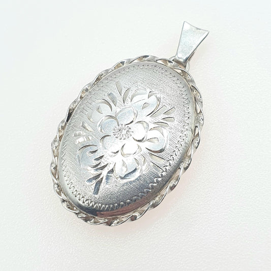 Vintage Sterling Silver Locket Rope Border Flower Hand Engraved Cute Oval Pendant Necklace Keepsake Jewelry Vintage Jewellery