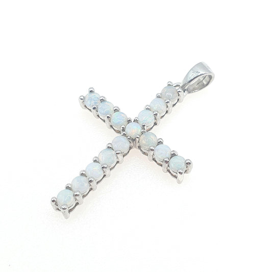 Vintage Sterling Silver Opal Cross Crucifix Pendant TGGC Real White Opals Necklace Catholic Christian Jewellery Jewelry Vintage Womens