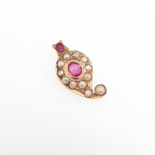 Antique Victorian 18ct 18k Gold Ruby Pearl Necklace Pendant Victorian Teardrop Solid 750 Vintage Jewelry Jewellery
