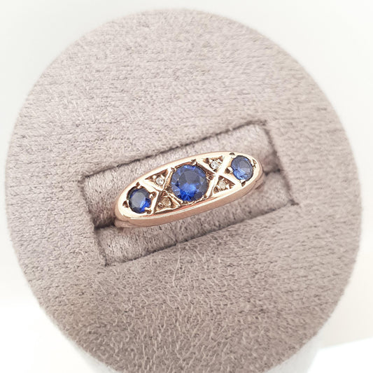 Antique 9ct Gold Sapphire & Diamond Ring 1918 Hallmark Rose Gold Solid 375 9k 9kt Vintage Jewelry Jewellery