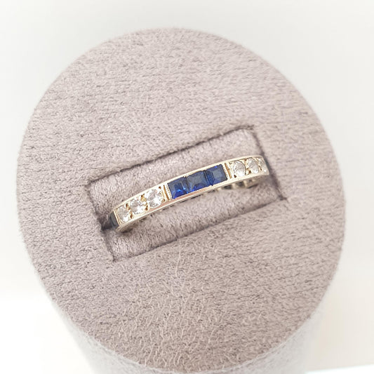 Antique 9ct Gold Sapphire Eternity Ring Solid 9k 9kt Genuine Gemstones Channel Set Art Deco Square Cut Jewelry Jewellery