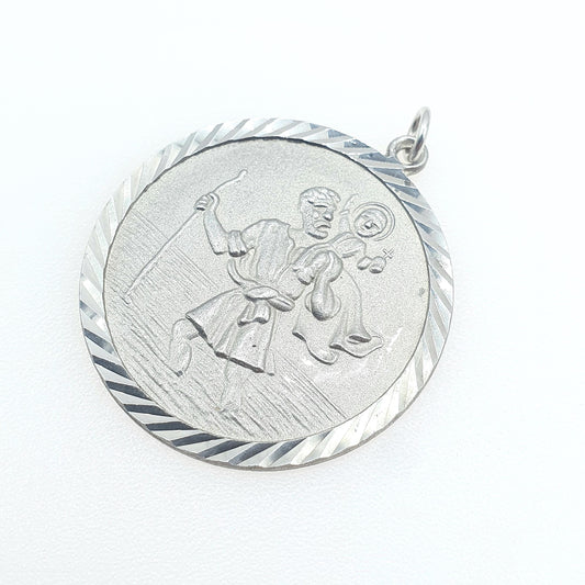 Vintage Sterling Silver St Christopher Pendant Large Round Travel Catholic Catholic Christian Necklace Mens Women’s Jewellery