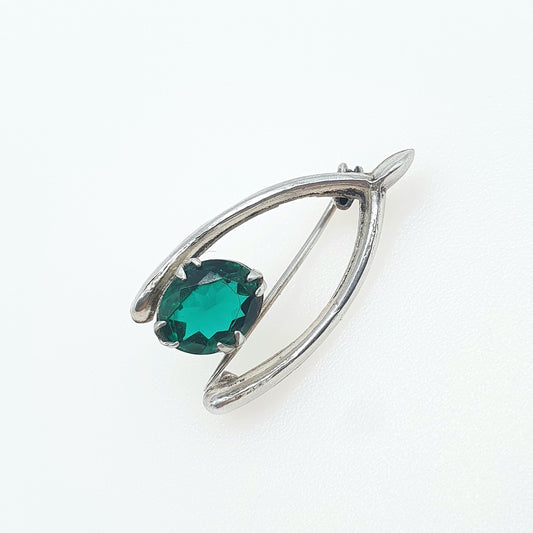 Antique Solid Silver Wishbone Brooch Emerald Paste Green Thanksgiving Good Luck Lucky Jewelry Jewellery Womens Mens Unisex