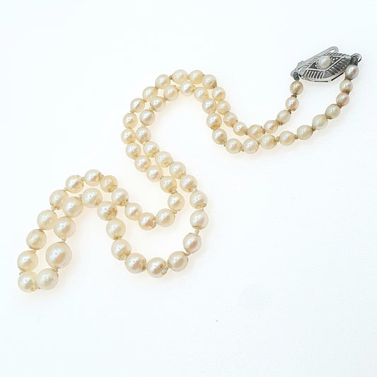 Vintage Sterling Silver Cultured Pearl Necklace Genuine Pearls Choker 10.55g 39cm 15.3” Womens Mens Jewellery Jewelry