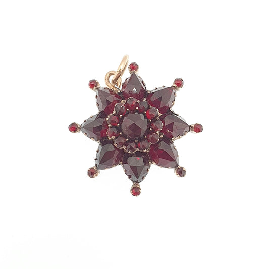 Antique Victorian Bohemian Garnet Star Pendant Necklace Rolled Gold Filled Starburst Celestial Renaissance Revival Vintage Jewelry Jewellery