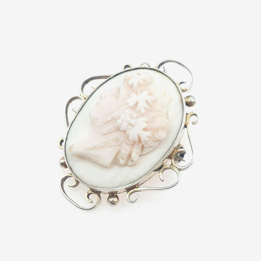 Antique Victorian Sterling Silver Gold Vermeil Cameo Brooch Pin Dionysius Greek God Vintage Womens Jewelry Jewellery