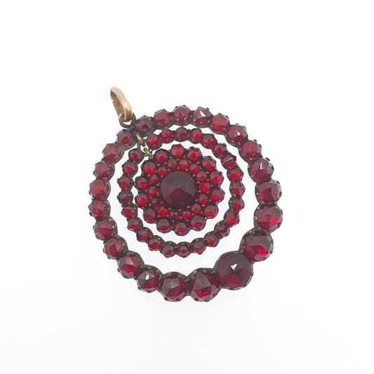 Antique Victorian Bohemian Garnet Pendant Necklace Rolled Gold Filled Crescent Renaissance Revival Vintage Jewelry Jewellery