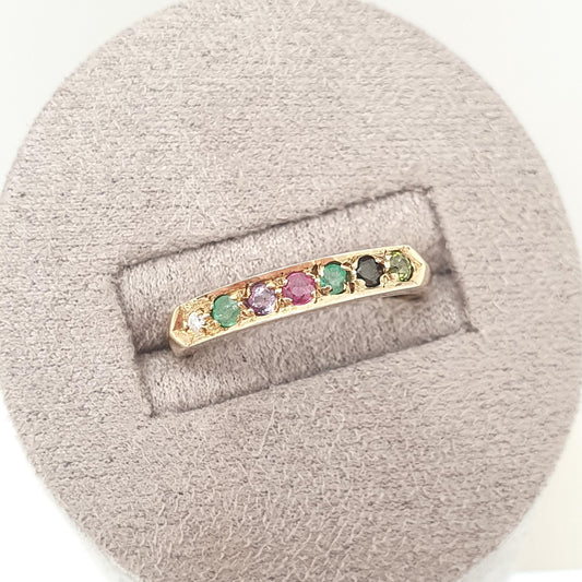 Vintage 9ct Gold DEAREST Ring Diamond Emerald Amethyst Ruby Sapphire Tourmaline Band Stacker Solid 9k 9kt Half Eternity