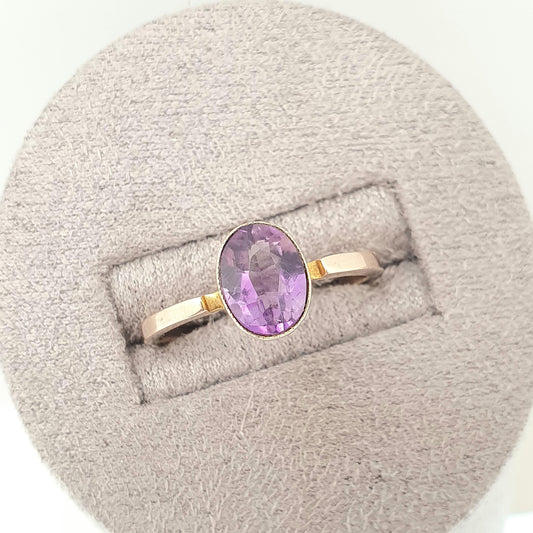 Antique 9ct 9k Gold Amethyst Ring Art Deco Oval Cut Solitaire Solid 375 9kt Genuine Gemstone Vintage Womens Jewelry Jewellery