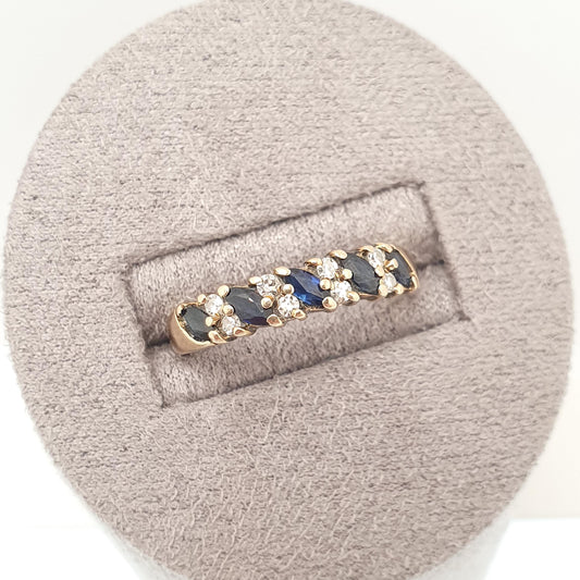Vintage 9k Gold Diamond & Sapphire Ring Marquise Cut Solid 9ct 375 Hallmark Genuine Gemstone Womens Jewelry Jewellery
