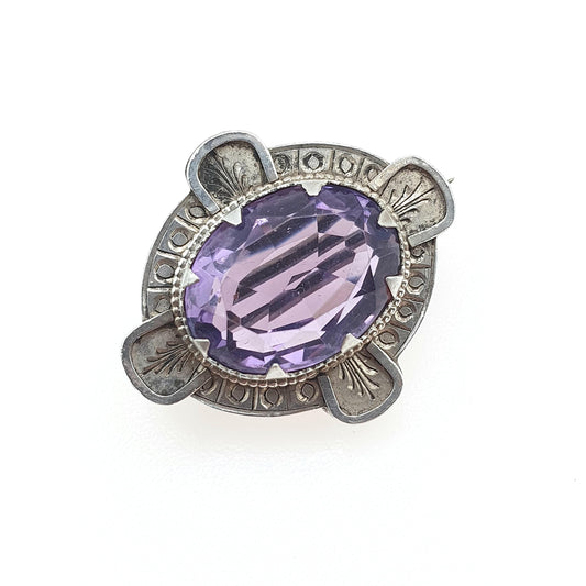 Antique Victorian Solid Silver Natural Amethyst Brooch Oval Cut Etruscan Revivial Vintage Womens Mens Jewelry Jewellery