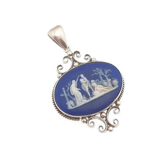 Antique Victorian Solid Silver Wedgwood Pendant Necklace 1900 Stamp Jasperware Royal Blue Genuine Jewelry Jewellery Vintage