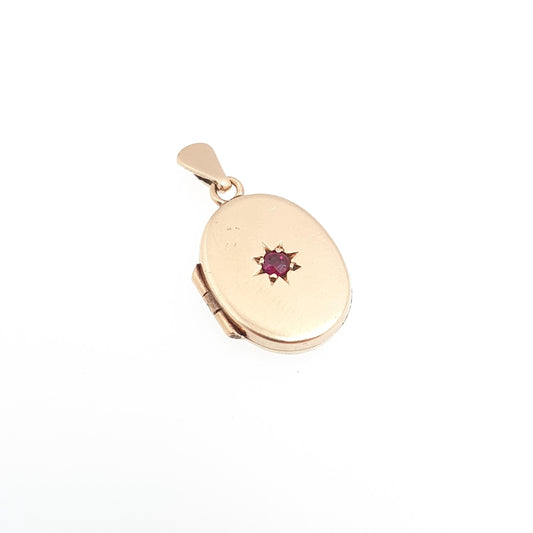 Vintage Solid 9ct 9k Gold Ruby Locket Small Oval All 9kt 9 Carat Star Centre Genuine Gemstone Necklace Photo Picture Pendant