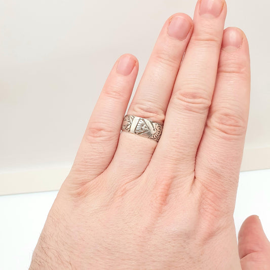 Antique Victorian Sterling Silver Band Ring 1892 Hallmarked Flower Deep Engraved Vintage 1800s Mens Womens Vintage Jewelry Jewellery