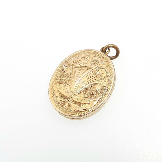 Antique Victorian 9ct Gold Locket 9kt 9k Back and Front Thistle Engraved Scottish Pendant Picture Photo Vintage