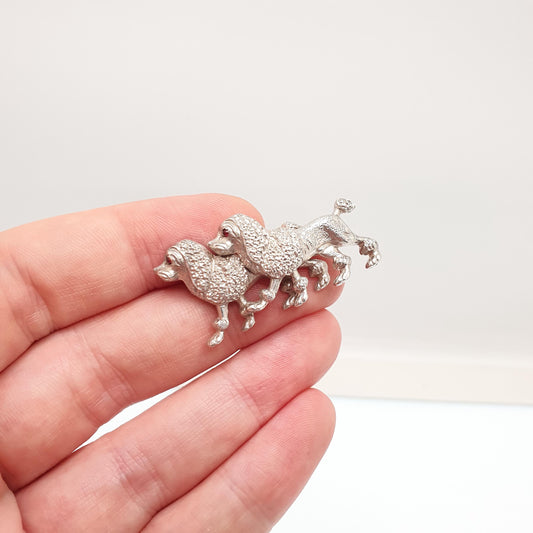 Antique Solid Silver Poodle Dog Brooch Pin Victorian Pair of Dogs Ruby Paste Eyes Animal Canine Vintage Jewellery Jewelry