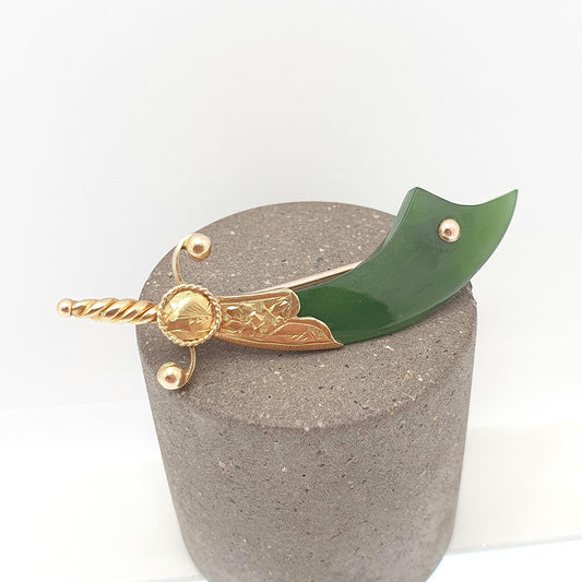 Antique 15ct Gold Scimitar New Zealand Jade Brooch Victorian Falchion Sword Solid 15 Carat 625 Nephrite Jadeite Jewellery Vintage Jewelry