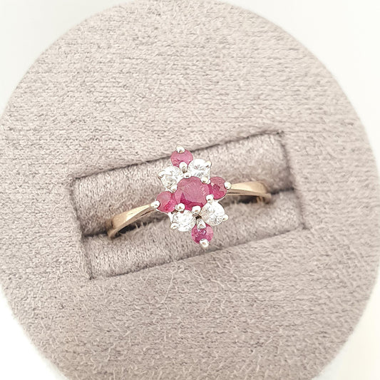 Vintage 9k 9ct Gold Ruby Ring Kite Cluster 1983 Hallmarked CZ Solid 9kt Red Genuine Gemstone Womens Jewelry Jewellery