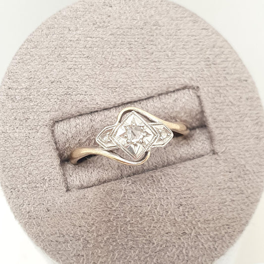 Antique 9ct Gold Diamond Ring Art Deco Old Cut Crossover Solid 9k 9kt Natural Diamonds Vintage 1920s Womens Jewelry Jewellery