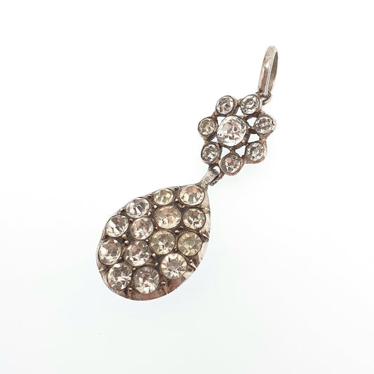 Antique Victorian Solid Silver Diamond Paste Necklace Pendant Cluster Pear Shape French Old Cut Sparkly Foiled Womens Jewelry