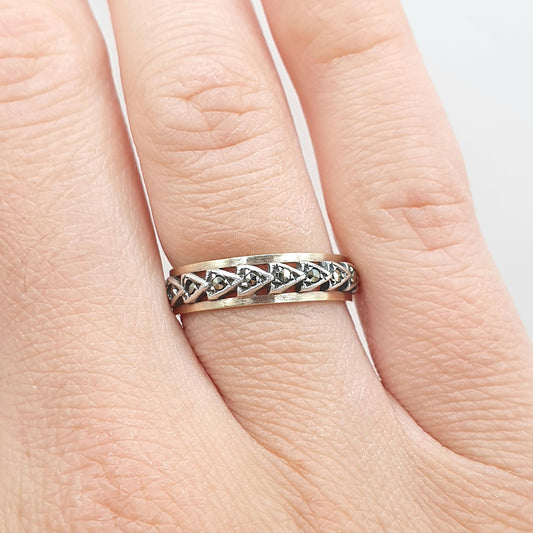 Antique Art Deco 9ct Gold & Solid Silver Marcasite Eternity Ring Triangle Arrow Pattern 1920s Womens Jewelry Jewellery UK N US 6.75