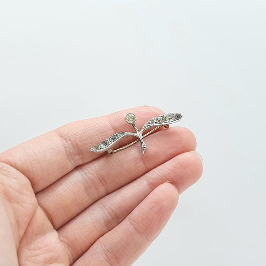 Antique Victorian Sterling Silver Diamond Paste Brooch Flower Leaf Style Art Nouveau Womens Jewelry Jewellery Vintage