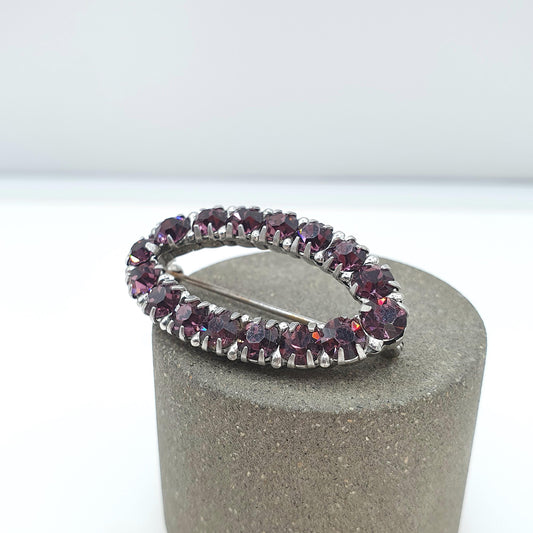 Antique Sterling Silver Amethyst Paste Eye Brooch Ellipse Art Deco 1920s Sparkly Vintage Womens Jewelry Jewellery