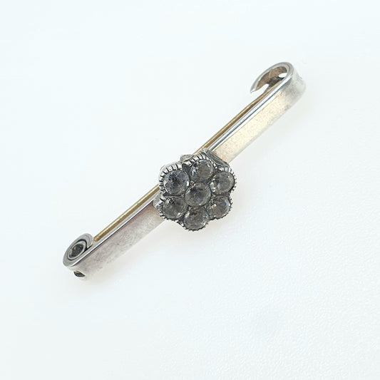 Antique Sterling Silver Black Dot Paste Brooch Georgian Cluster Centre Bar Pin Vintage Womens Jewelry Jewellery