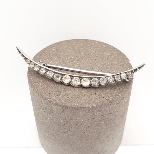 Antique Solid Silver Crescent Moon Diamond Paste Brooch Victorian Sparkly Vintage Celestial Womens Jewelry Jewellery 1800s
