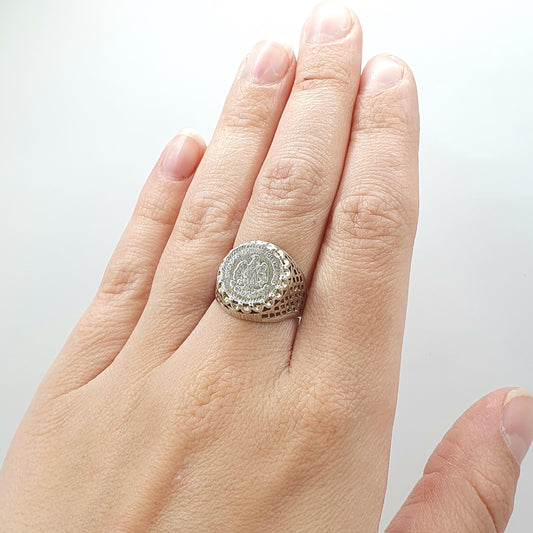 Vintage Solid Silver Estados Unidos Mexicanos Coin Signet Ring Chunky Large Big Retro Womens Jewelry Jewellery UK N.5 US 7